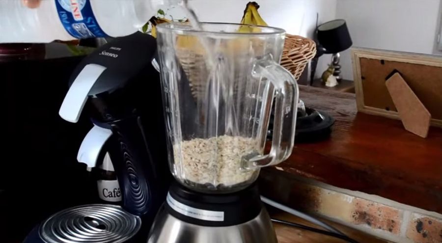 - Placez les flocons d'avoine dans le blender ainsi qu'une pincée de sel, une cuillère à soupe de sirop d'agave et enfin 1L d'eau.