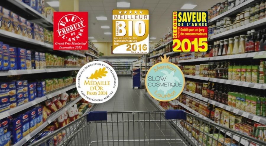 La pratique n’est pas nouvelle, chaque année de nouveaux produits sont estampillés "Produit de l’année", "Saveur de l’année" ou encore "Meilleurs Produits Bio". ll est important de préciser que les distinctions présentes sur nos emballages ne sont pas des labels, ils ne sont en rien officiels et ne répondent pas à des cahiers des charges strictes comme le label AB ou l'appellation AOC.