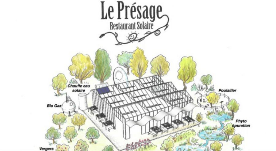 Le pari de la cuisine à l’énergie solaire est rempli mais déplacer et monter l’équipement nécessite trop de temps et de main-d’oeuvre pour être rentable. Pour être viable, Le Présage doit se sédentariser. Pierre-André et son équipe jettent alors leur dévolu sur une ancienne serre horticole d’Aubagne, près de Marseille, qu’ils entendent rénover. La structure abritera la cuisine et une salle de restaurant végétalisée qu’ils espèrent ouvrir en 2016. Tout autour se dresseront les éléments qui assureront l’autonomie de l’établissement : chauffe-eau solaire, mini-usine à biogaz pour valoriser les déchets de la cuisine et se servir de l’énergie produite les jours sans soleil. Tout cela côtoyant un poulailler et une forêt comestible pour manger local, ultra-frais et être aussi autonome que possible en matière d’approvisionnement.