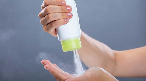 - l’exposition des parties génitales des femmes à des produits contenant du talc (poudre pour le corps ou pour bébé, crèmes pour les irritations et l’érythème fessier, antisudorifiques, déodorants génitaux, lingettes pour le corps et bombes pour le bain).