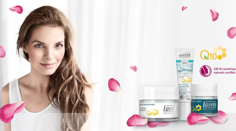 lavera propose notamment une gamme de cosmétiques pour lutter contre les signes de l’âge et du vieillissement de la peau avec sa gamme "basis sensitiv à la coenzyme Q10 naturelle". La coenzyme Q10 est naturellement présente dans notre organisme. C’est l’un des actifs antirides les plus réputés. Grâce à ses propriétés antioxydantes, la coenzyme Q10 participe, en effet, à l’oxygénation des cellules cutanées. Elle leur fournit l’énergie nécessaire pour se défendre plus efficacement contre les agressions extérieures. Elle neutralise ainsi les radicaux libres qui détruisent le collagène et l’élastine de la peau. Mais avec le temps, notre production naturelle de coenzyme Q10 diminue. Les cellules se régénèrent moins et les défenses naturelles s’amenuisent. C’est alors que les rides et ridules apparaissent.