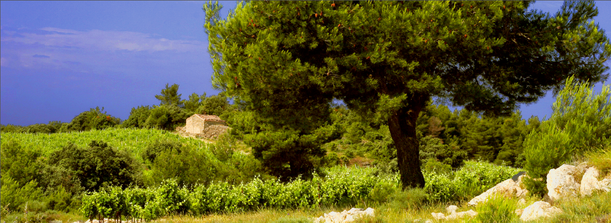 Vignes et Pins sur la commune de La Livinière, Languedoc-Roussillon, France
