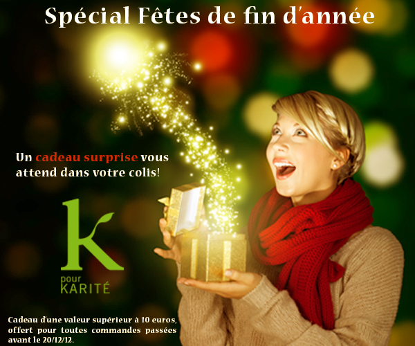 K pour Karité offre un cadeau surprise d'une valeur supérieure à 10€ pour toute commande passée sur le site : www.kpourkarite.com